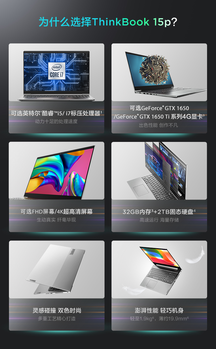 聯(lián)想ThinkBook 15P(00CD) 15.6英寸筆記本電腦 高色域 標壓i7 GTX1650Ti-4G顯卡 16G內(nèi)存 512G固態(tài)硬盤
