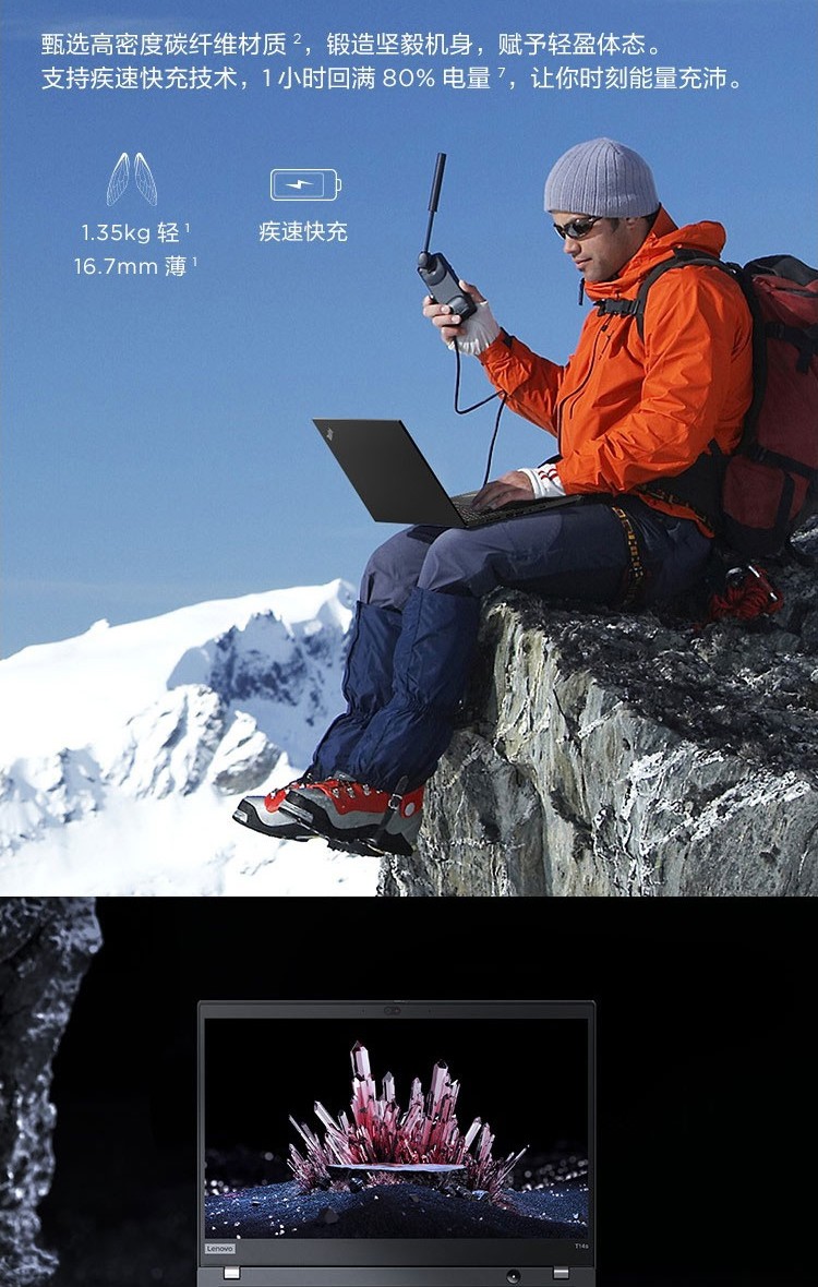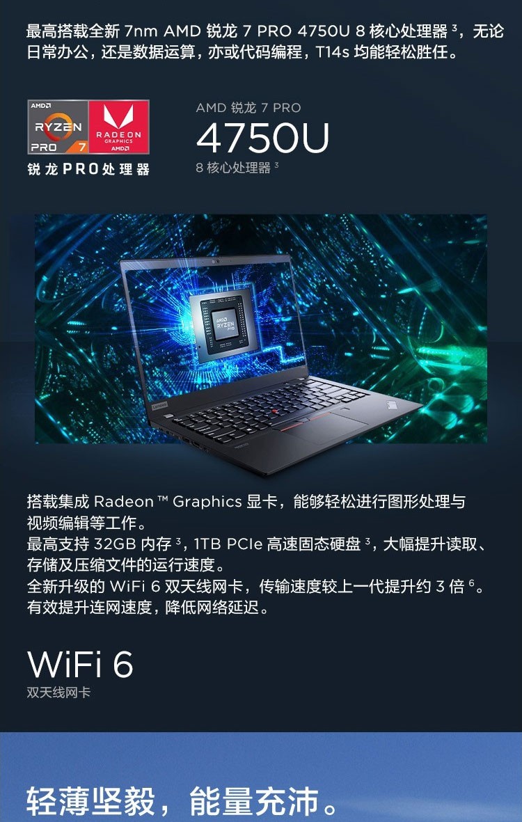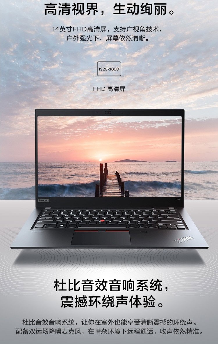 聯(lián)想ThinkPad T14s AMD銳龍八核14英寸碳纖維輕薄高性能辦公筆記本電腦 T14s 08CD:R7 PRO-4750U/16G/512 FHD全高清 指紋識別 Win10 WiFi6