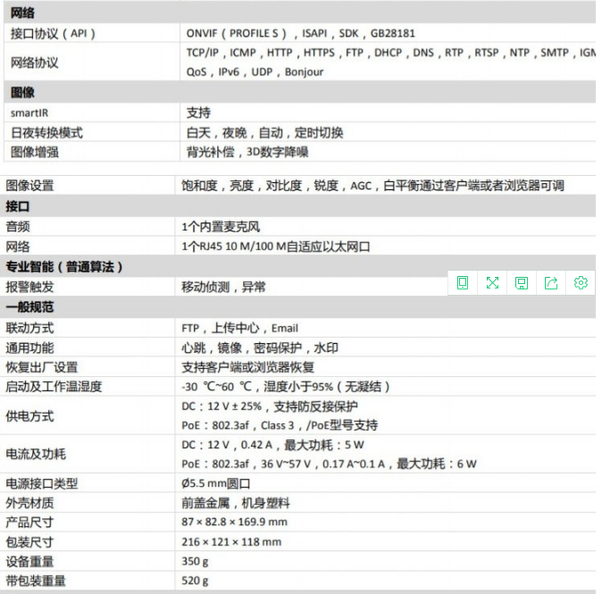 ??低暎℉IKVISION)DS-IPC-B12HV2-IA 監(jiān)控?cái)z像機(jī) POE供電/ 4MM焦距