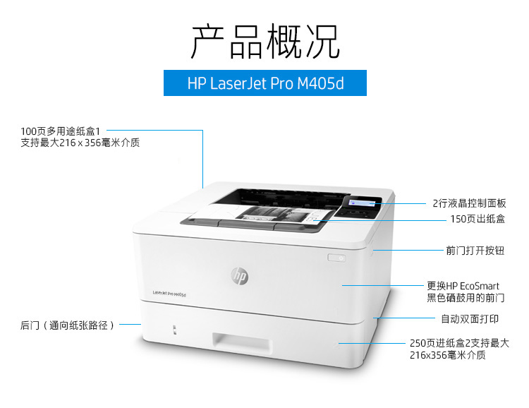 惠普(HP) M405dN專業(yè)級(jí)激光打印機(jī) 多功能一體機(jī) 液晶顯示屏 自動(dòng)雙面打印 USB
