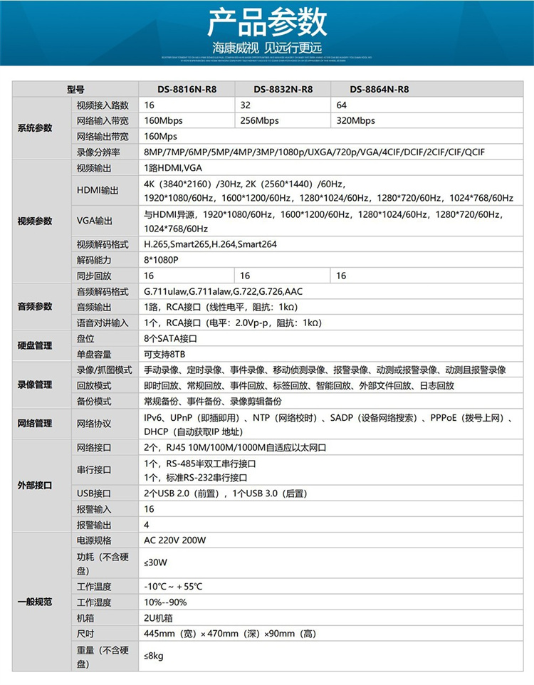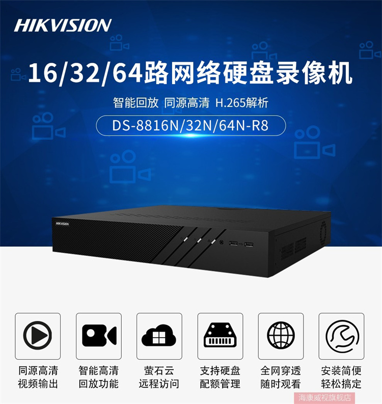 海康威視 DS-8864N-R8 (64路/8盤位)??低暰W(wǎng)絡(luò)監(jiān)控硬盤錄像機NVR主機8盤位支持4K高清多路回放