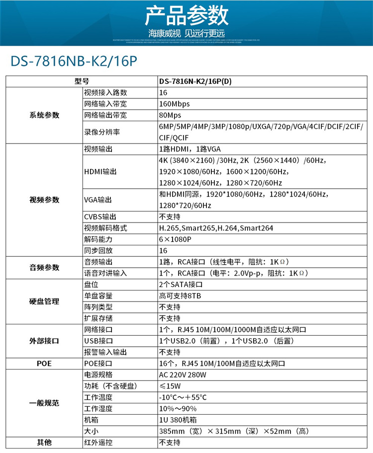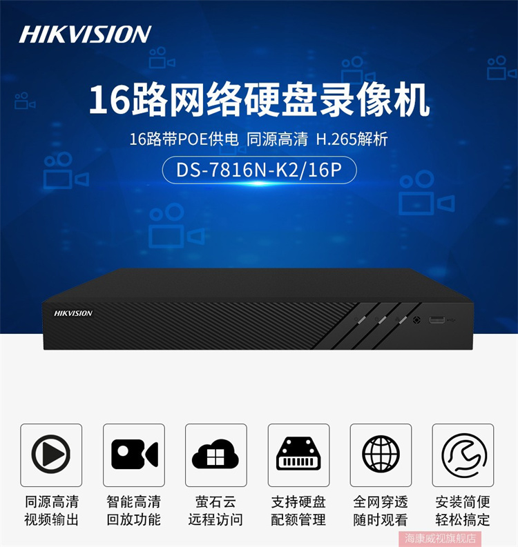 海康威視 DS-7816N-K2/16P ??低暰W(wǎng)絡(luò)監(jiān)控硬盤錄像機(jī)16路帶POE 不帶硬盤